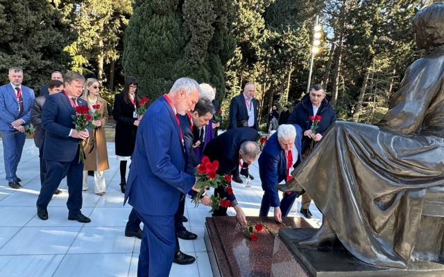 День выборов для российской делегации начался с возложения цветов первому президенту Азербайджана - Гейдару Алиеву.