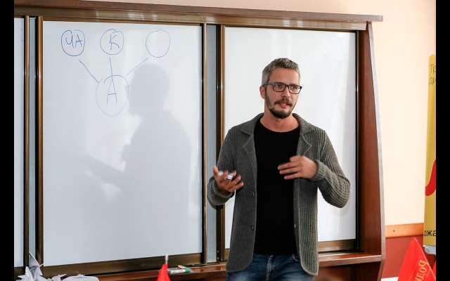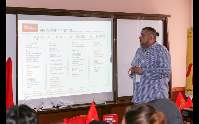 Семинар проводился в трех группах под руководством известных дизайнеров Владимира Лифанова (студия Suprematica), Андрея Кожанова (FrontDesign brand atelier) и Тимура Салихова (студия Firma).