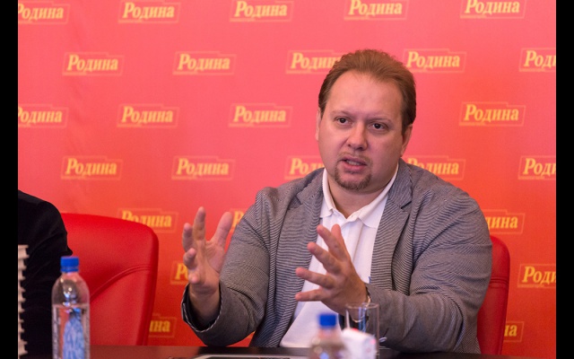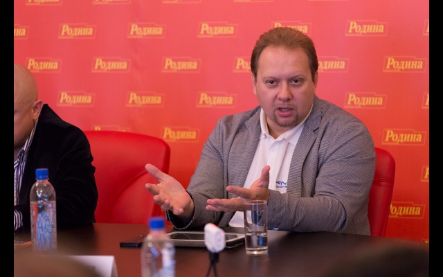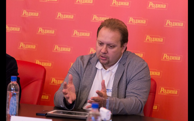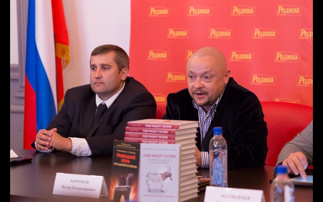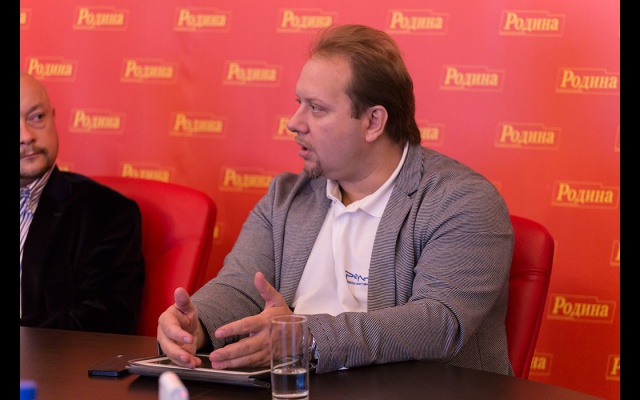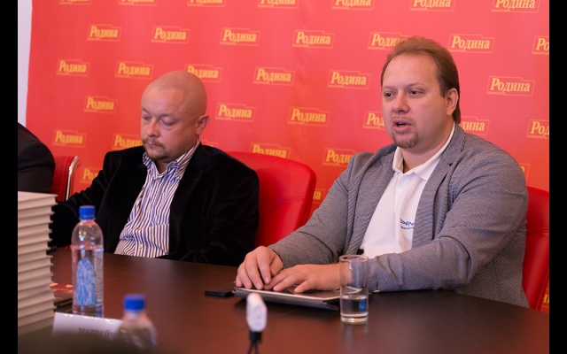 В конце заседания Фёдор Бирюков вручил Олегу Матвейчеву новый партийный значок "РОДИНЫ", выполненный с использованием кремлёвской звезды.