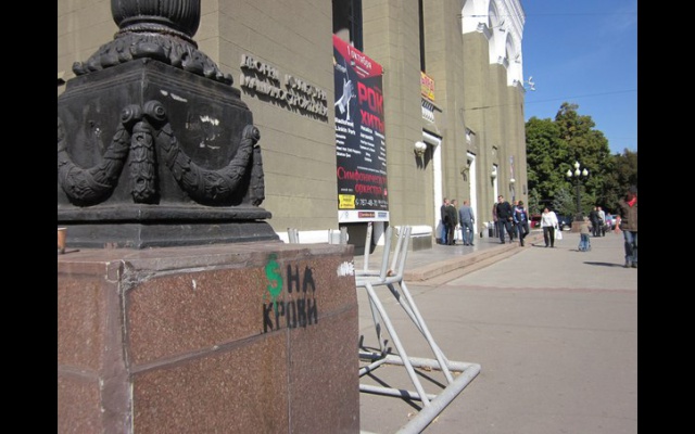 На этих выходных активисты Днепропетровского и Днепродзержинского подполья "поздравили" горожан с Днём города акцией "Деньги на крови". Сделали они это, украсив улицы городов лозунгами, раскрывающими суть участия банка "Приват" в последних событиях на Украине.