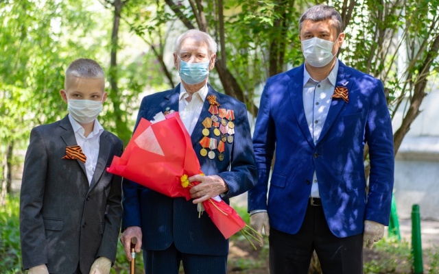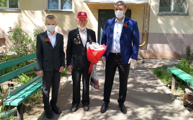Нуждин поздравил с 75-летием Победы легендарного героя Сталинградской битвы Сергея Сергеевича Алёхина. Он вручил ветерану цветы и подарки, памятный адрес Всероссийского проекта "75 правил жизни победителей", героем которого тот стал, и, конечно, исполнил давно ставшую символом праздника песню "День Победы".
