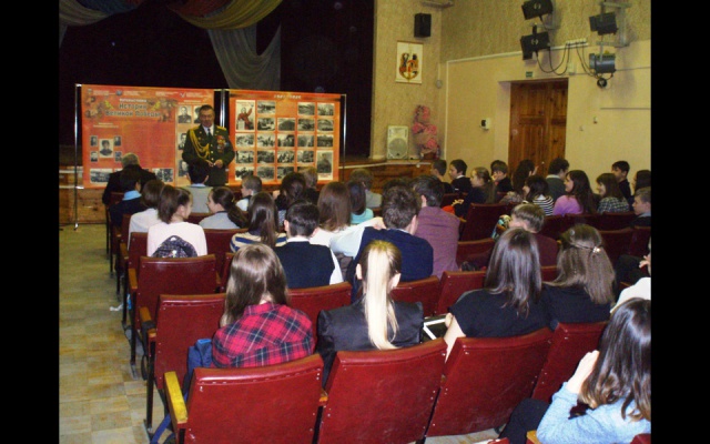 14 апреля состоялась встреча учащихся 96-й гимназии с участником боевых действий на Северном Кавказе, членом бюро регионального отделения партии "РОДИНА" Сергеем Седневым.