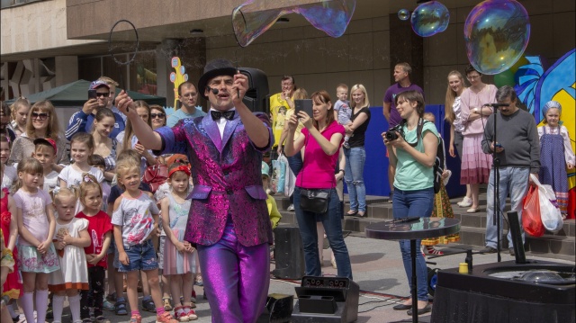 Оно прошло в ДК "Победа" поселка Удельная Раменского района Подмосковья. Детей порадовало шоу мыльных пузырей, ходулисты и фотозоны, обширная концертная программа и анимационные блоки, битва роботов, уголки творчества, батуты, буфет.